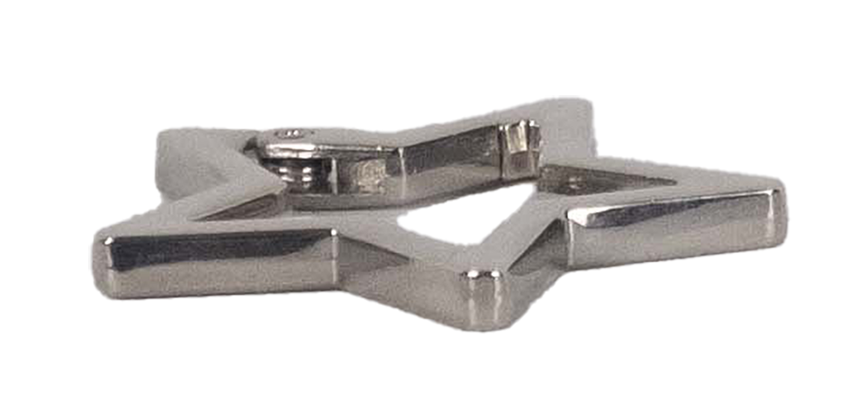 Der Karabiner ist ein Gegenstand aus der Handwerksarbeit. Er ist ein Verbindungselement, das dazu dient, Gegenstände sicher und lösbar miteinander zu verbinden. Die Öffnung hat einen Federmechanismus und ist dadurch handlich und schnell bedienbar. Durch unterschiedliche Bauform und Materialität ist er für verschiedene Belastungen und Sicherheitsanforderungen hilfreich. Der Karabiner dient unter anderem des Zusammenhalts des Schlüsselbunds oder Schlüsselanhängers. Durch Trendentwicklung ist er in verschiedenen Formen an Taschen und Hosen als Accessoire zu finden. Die Form des Sterns als eine davon ist besonders in queeren Kreisen als funktionales Accessoire und Symbol zu sehen.